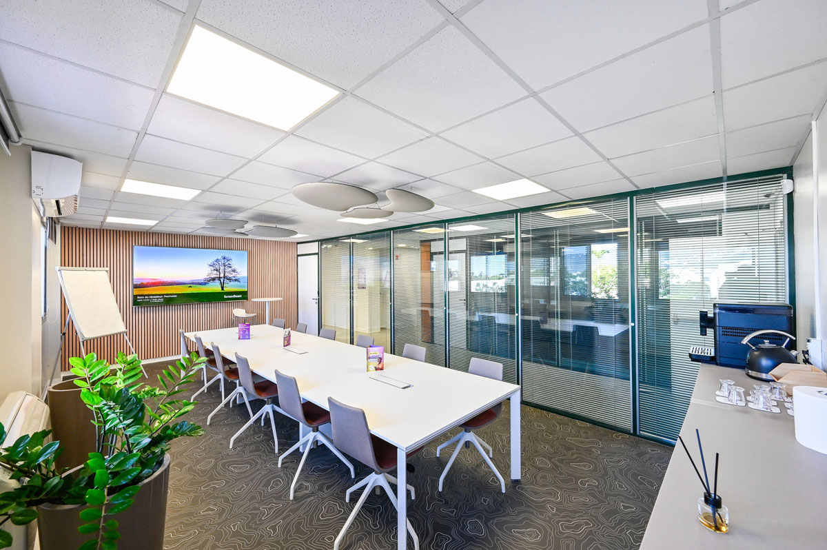 Plusieurs salles (dotées notamment d’écran de projection et de smart TV) d’une capacité de douze personnes sont disponibles ainsi qu’un espace de coworking équipé de wifi très haut débit. Accès à la salle de détente mais aussi au patio extérieur.