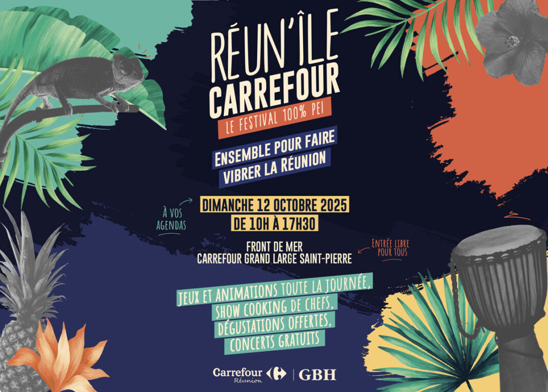 Le 12 octobre, Réun’île Carrefour donne rendez-vous pour ensemble faire vibrer La Réunion ! Un festival 100 % péi, 100 % gratuit… et 100 % pour vous.